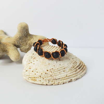 ![]() - Black Lava Stone Twisted Wire RingEC$12.50
