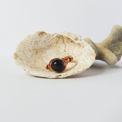 ![]() - Black Obsidian Twisted Wire RingEC$12.50