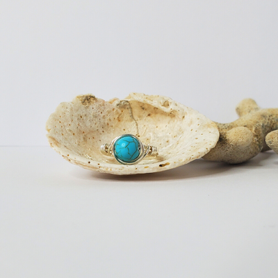 ![]() - Blue Turquoise Wire Wrapped RingEC$10.40