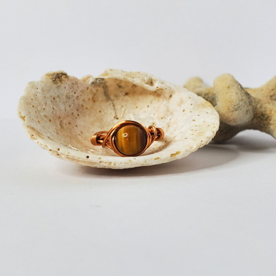 ![]() - Brown Tiger's Eye Wire Wrapped RingEC$10.40